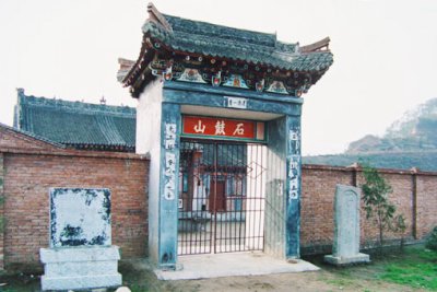 旧文物局在火车站后面的山上金台观里。古观里正好有石鼓展览。真巧!在金台古观的门口我们遇到了宝鸡市文物局副局长任南方同志,他先带我们进了金台古观。金台古观是明朝道人张三丰修道的地方,现在的石窑相传是张三丰修道时的住所,门前的葫芦形炉里冒出浓浓的香烟。