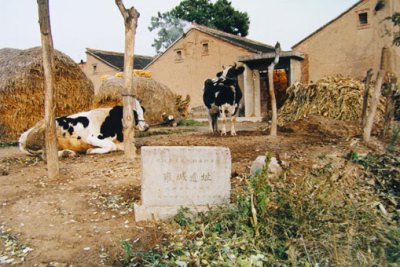 雍城是先秦的第三个都城,过去称雍州。秦以此地做都城长达264年,后迁到咸阳。从这里到宝鸡县魏家崖村有二十多里路,在路边牛围栏旁我们看到陕西省人民政府立的雍城遗址石碑。