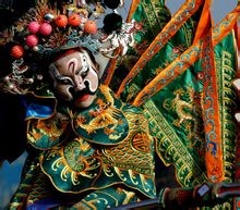 陇州民间艺人根据对所扮角色的理解进行大胆细致的创作。利用色彩图案、线条穿插变化,在突出人物的容貌特征方面刻画十分细致、具体、直观、给人一种原始清晰之感。