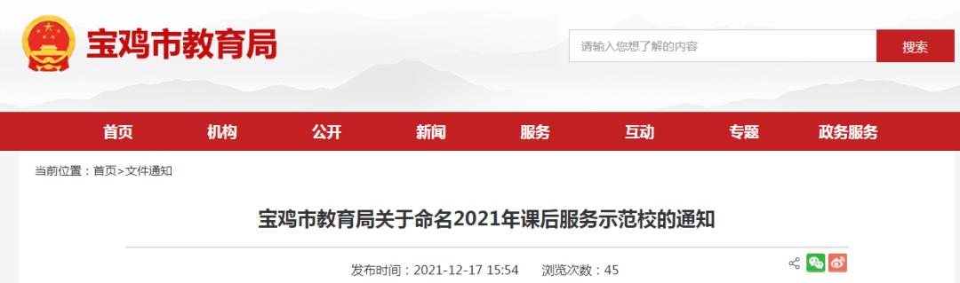 宝鸡2021年课后服务示范校来啦