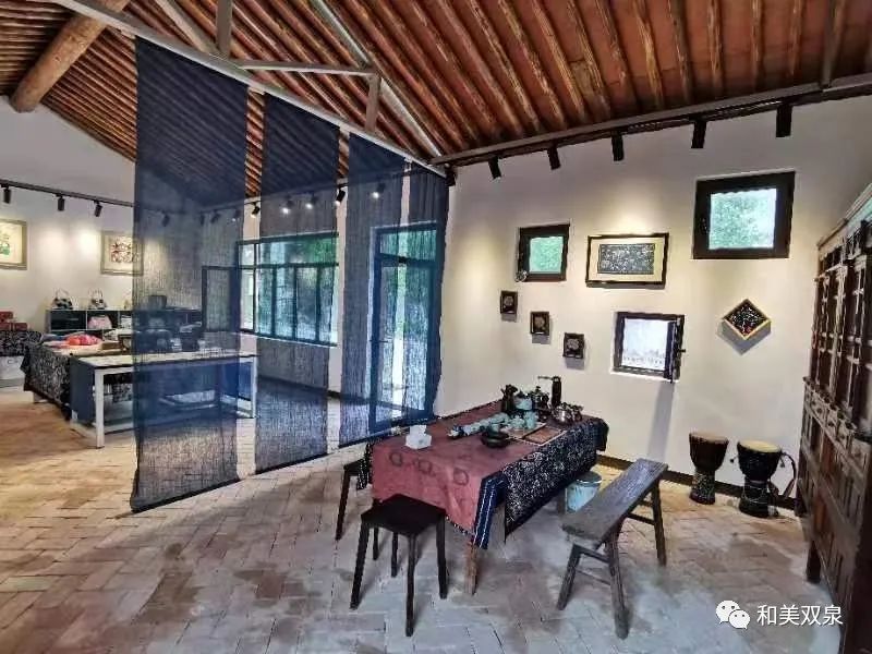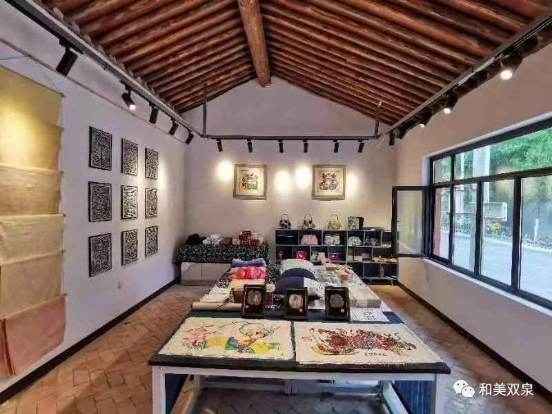双泉镇胡家门村正逐步打造以非遗+农户+文创中心输出的模式的特色村落。2020年12月,陇西刺绣非遗扶贫就业工坊入驻双泉镇胡家门村,由于双泉镇主要产业为种植中药材,祖辈们经常用各种药材来给衣服鞋袜进行染色,百草染色工坊正是在这种环境下重现往日的工艺,通过不断的研究学习和实践,研发出各类用中药材染色的日常用品以及文创产品;2021年5月20日,陇西县渭州学校“社会教育实践基地”在胡家门村百草染色馆挂牌成立。目前,已建成的有染色坊、泥塑坊、剪纸坊、磨坊、文创中心,乐坊、书画坊、膳坊、酒坊、授业坊、演武坊、烧陶坊、养生坊正在建设中。同时,在定西市中和银街文化中心设立非遗十二坊城市旗舰店,在胡家门村设立胡家门村非遗文创中心,城市旗舰店主要做产品的线下销售、产品展示,为胡家门村非遗文创中心引流。以城乡互动为切入点,带动非遗产业化发展,胡家门村百草染色产业成为了当地旅游的一张新名片。