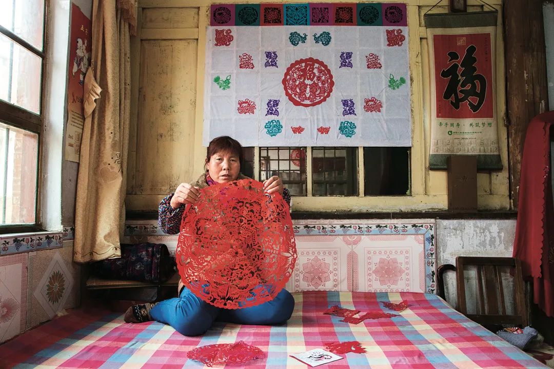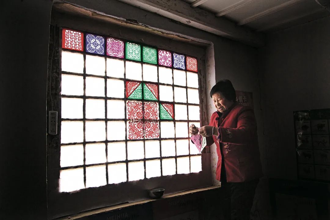 城关镇北关村90 岁的王仍燕奶奶每年都会给家里的窗户贴上自己剪的窗花,这在村里是独特的一户。2018 年11 月5 日,张冬萍摄影
